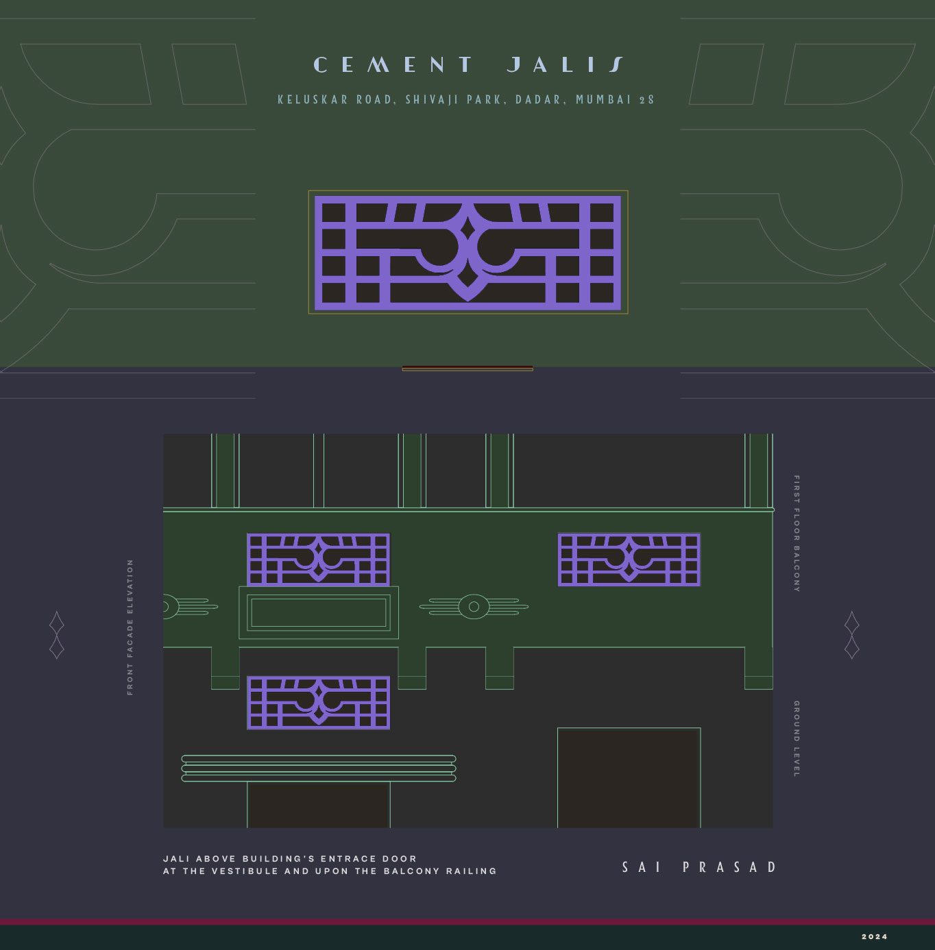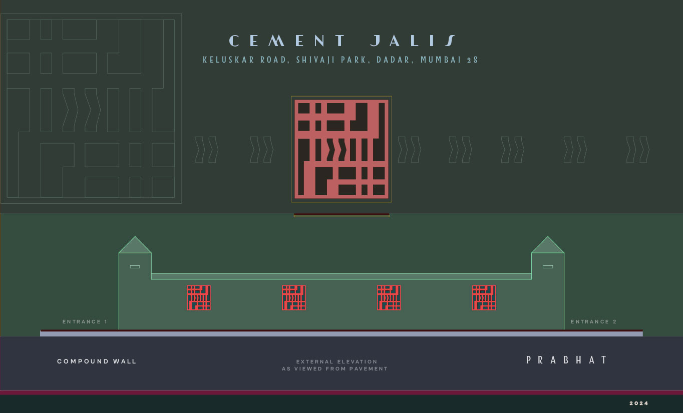 With only a few surviving old Art Deco buildings in Shivaji Park, this is an attempt to record some of its characteristic feature. These buildings exude a homely vibe, with almost all of them being under four storeys and featuring small yards. They are separated from each other and from the pedestrian pavement by low compound walls, which mark the property boundaries. These walls often have decorative metal railings or are punctured by cement jalis, providing both privacy and ventilation to the ground-level homes.