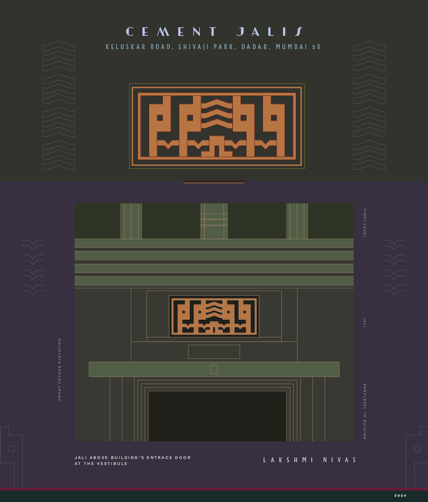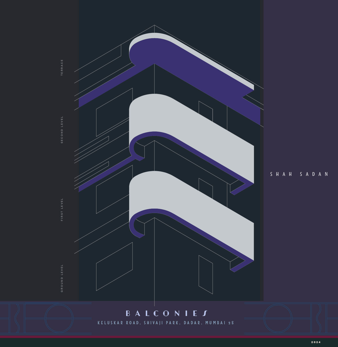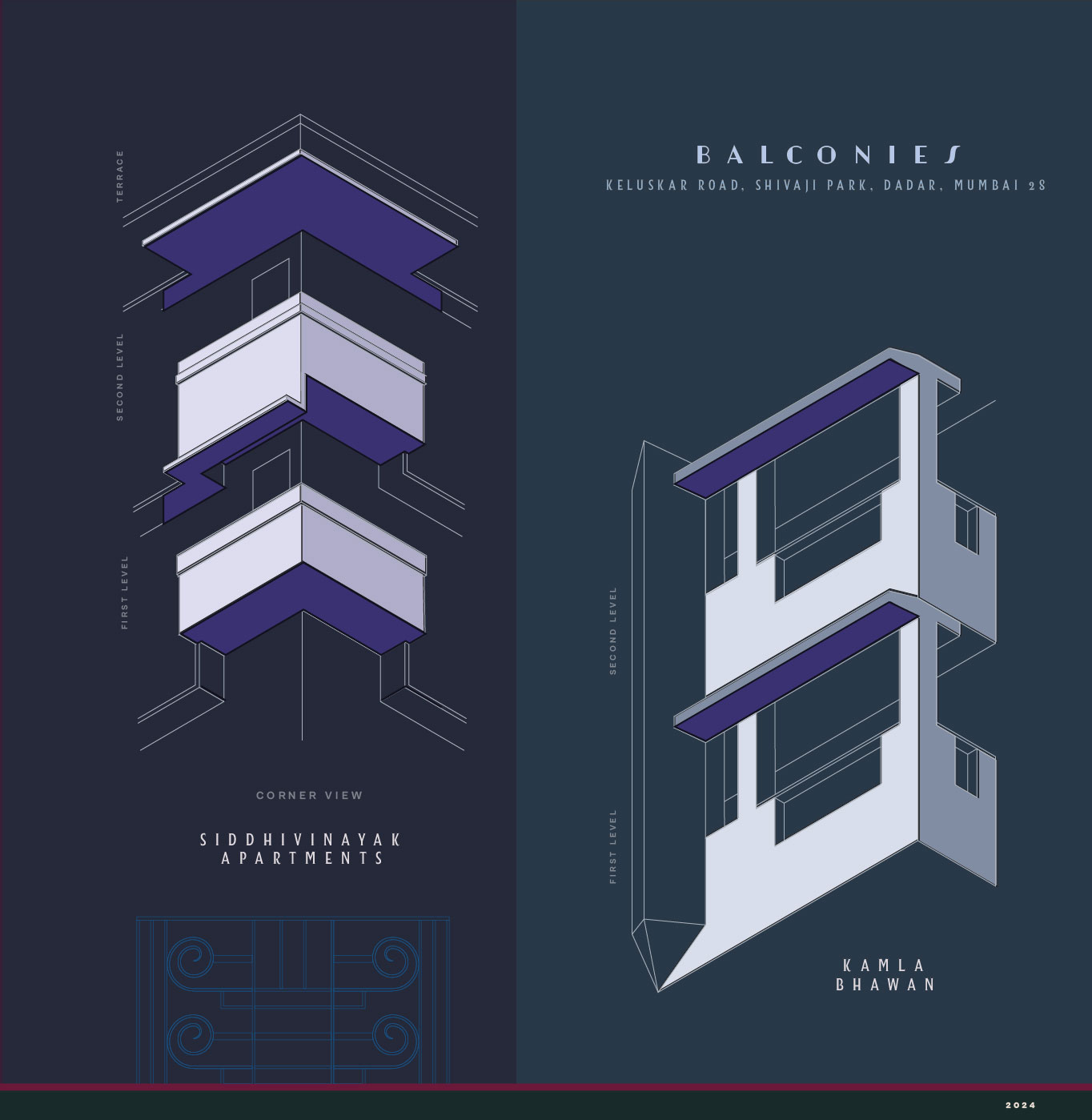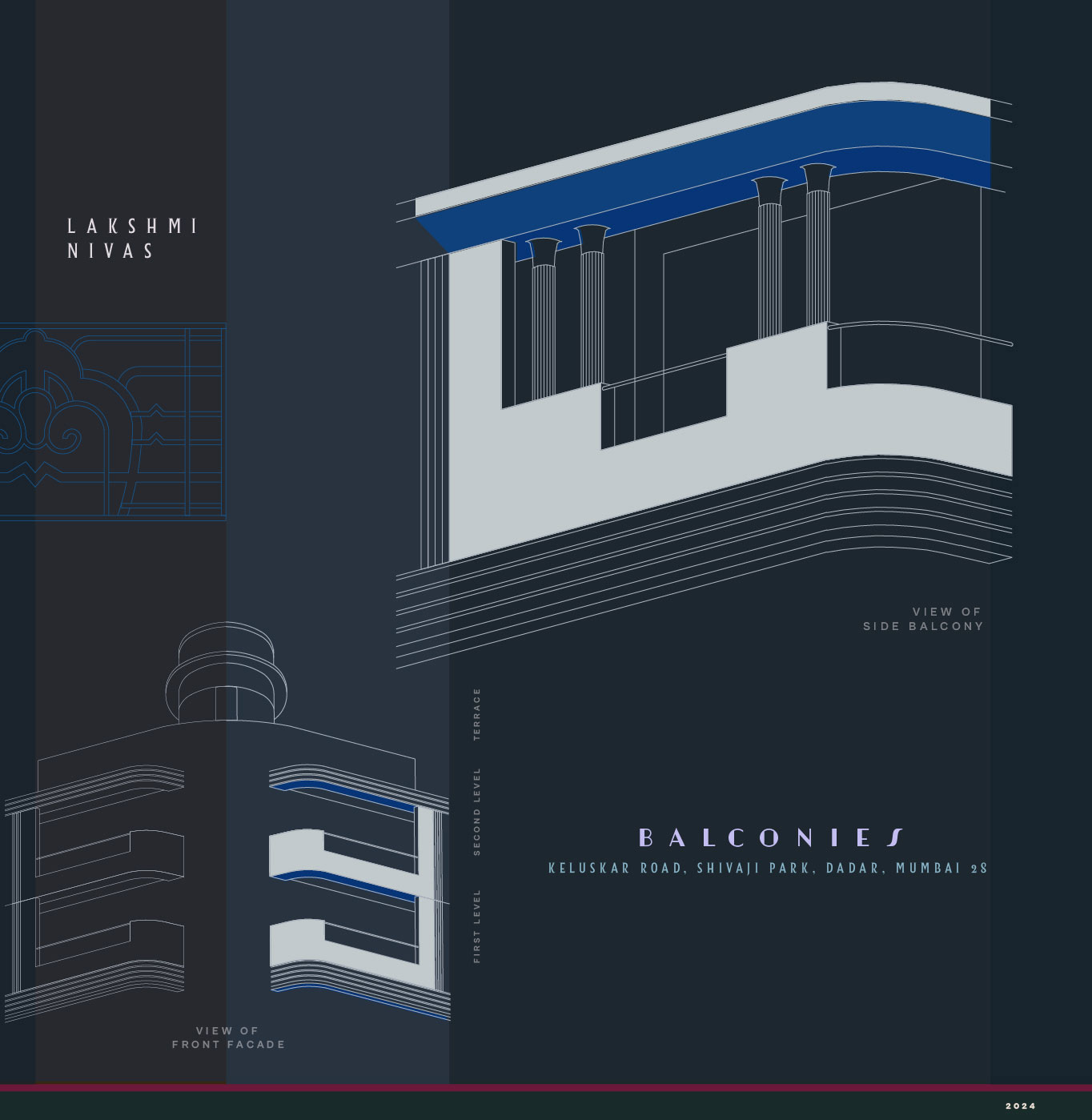 Note on the Documentation: The drawings presented below are made proportionally and are not measured drawings nor are they to scale. The intent behind creating these illustrations is to provide a sense of the artistic and stylistic heritage of the Art Deco movement as observed in the buildings of Shivaji Park. A few bulding names are taken as they currently appear on google maps, so as to make it easier for them to be traced.