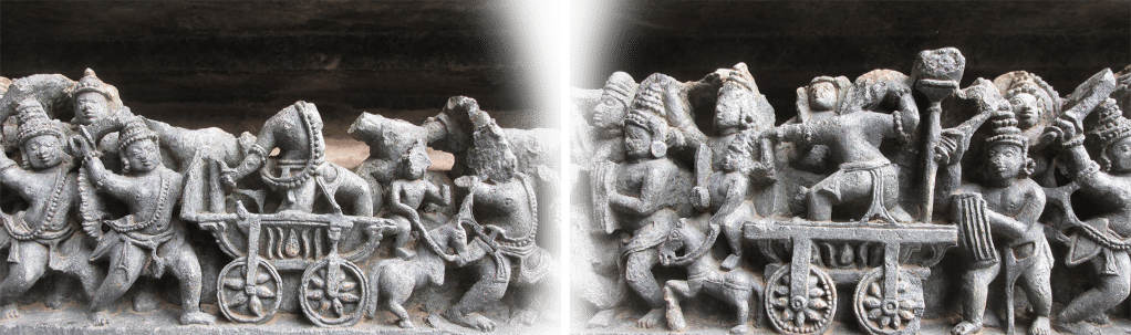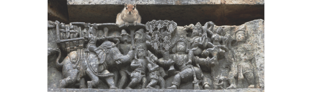 The Hoysala Temples at Halebidu and Belur are exquisite in carved craftmanship, and are rich in visual and narrative imagery. This page displays some of the Figurative Sculptures from the exterior walls of the two temples that form a part of UNESCO’s ‘Sacred Ensemble of Hoysala’. These two temple complexes are the Hoysaleshwara Temple at Halebidu and Chennakeshava Temple at Belur.