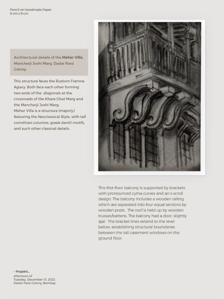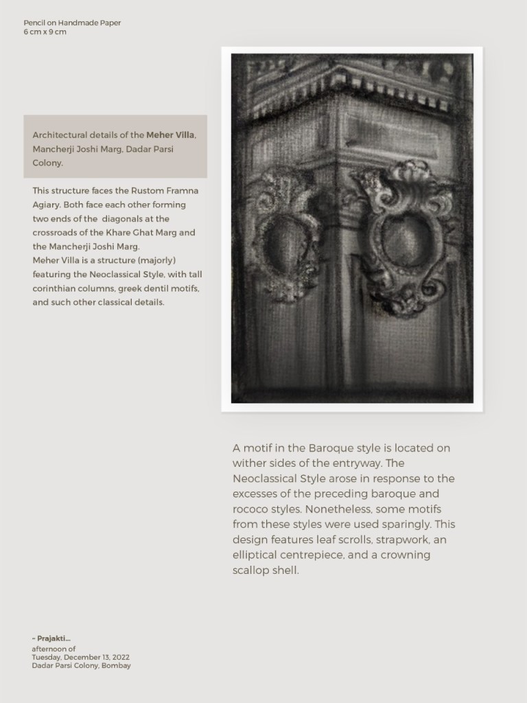 There are several structures here that belong to the Art Deco and Neoclassical styles. Some of the elements from the buildings are sketched below: